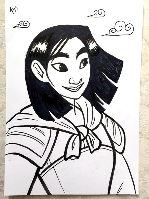Mulan in her Ping outfit original art card. Inked on a 4.5x6.5" art card (see photos to get an idea of size)