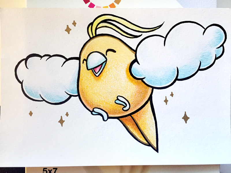 4x6" original art card of Shiny Swablu Drawn with colored pencils and inks.